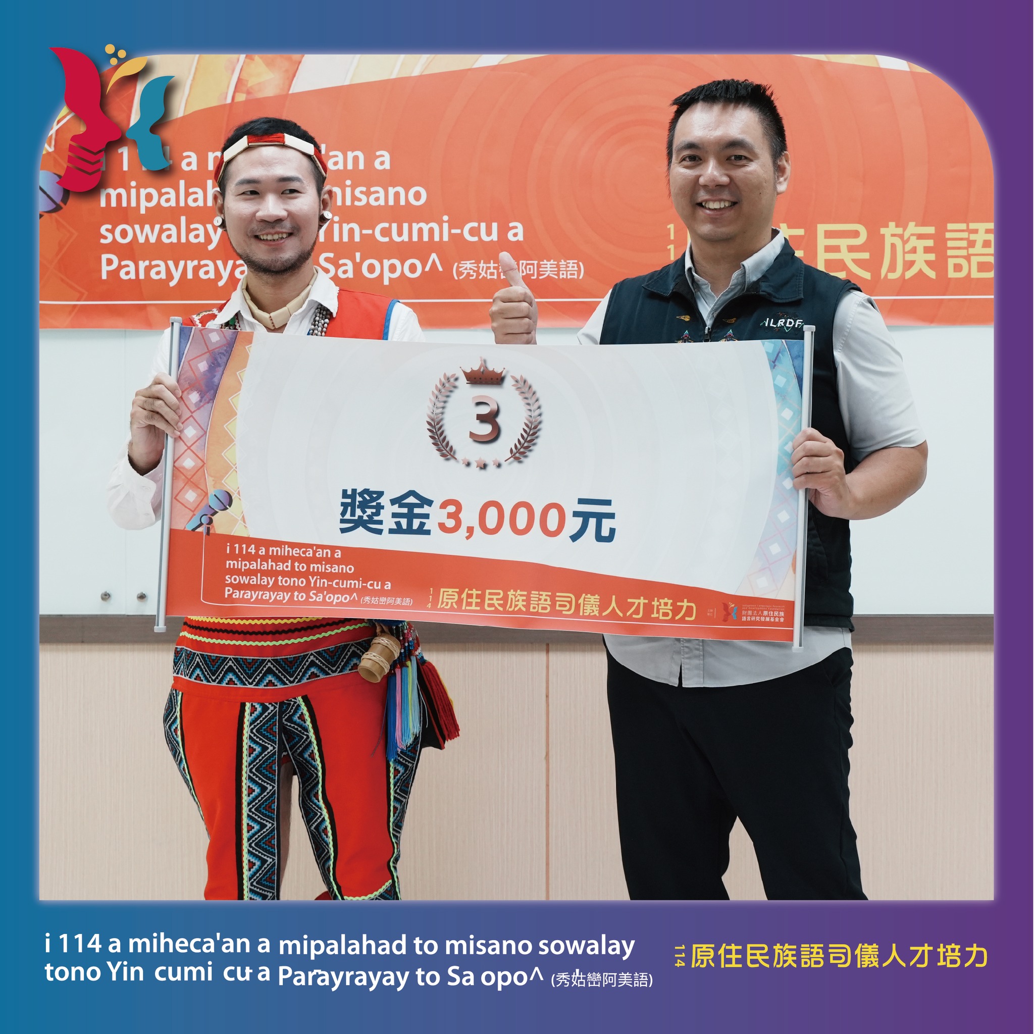第三名Kolas Ngayngay劉時維,榮獲 3,000 元獎金