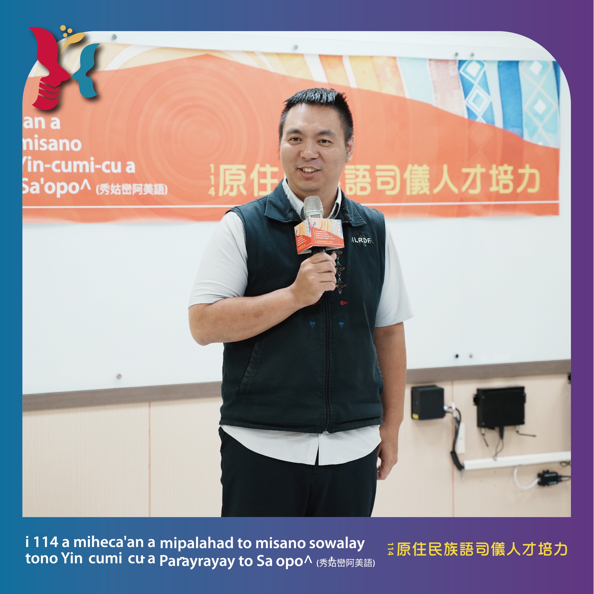 本基金會執行長 Lowking Nowbucyang許韋晟在結業式中指出:「恭喜所有學員順利通過司儀人才培力課程,在去(113)年結訓的學員中,已有多位受邀在重要活動擔任族語司儀。例如在今年的臺中國際兒少書展中,原語會就邀請了受培力的優秀學員主持活動,實際展現課程成果與舞台實力。這樣的實戰經驗非常重要,因為每一場主持都是成長的歷程,族語不只是學會說,而是學會在不同的情境中靈活應用,這才是真正的文化傳承。」