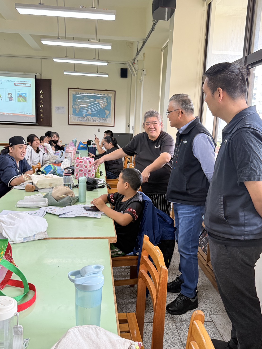 為了實際瞭解試區應試狀況,原語會俄鄧.殷艾董事長今日特別前往金甌女中試區巡視,並於考生休息區為考生加油打氣,也很感動能看見「新北市乒夢桌球協會」團報成員年齡跨越4歲到60歲,逾40人一起為族語傳承努力。