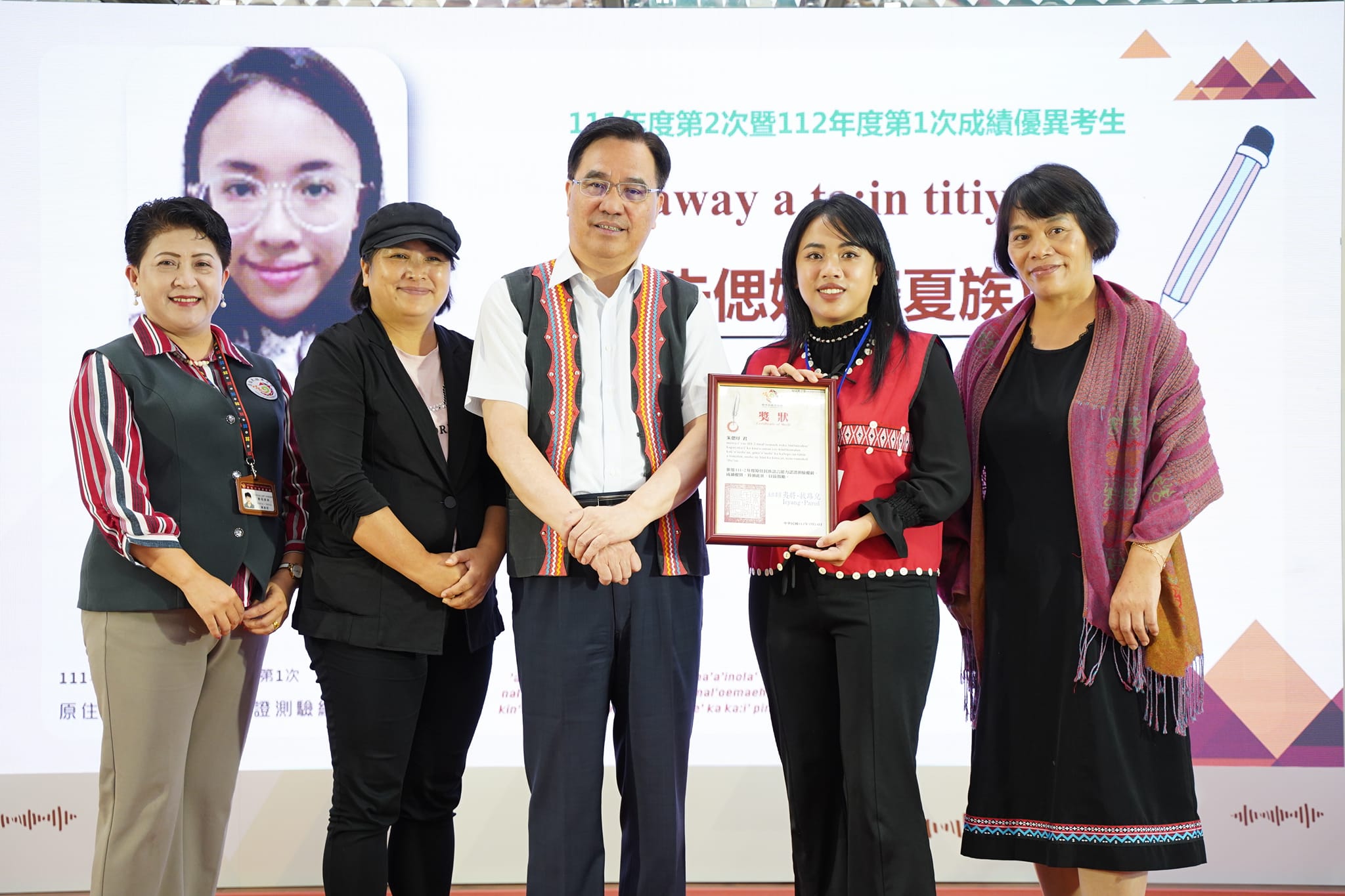 財團法人原住民族語言研究發展基金會(下稱原語會)為表揚族語向下扎根的實踐者,舉辦「111年度第2次及112年度第1次原住民族語言能力認證測驗」表揚典禮,選出16位成績特殊優異者,於今(24)日上午10時30分,假原住民族委員會16樓廣場辦理表揚典禮。典禮由原民會主任委員夷將‧拔路兒Icyang‧Parod及原語會董事長Mayaw‧Kumud馬耀‧谷木致詞,並頒贈獎狀及iPad,鼓勵每位獲獎人繼續學族語、說族語,讓族語能夠遍地開花。