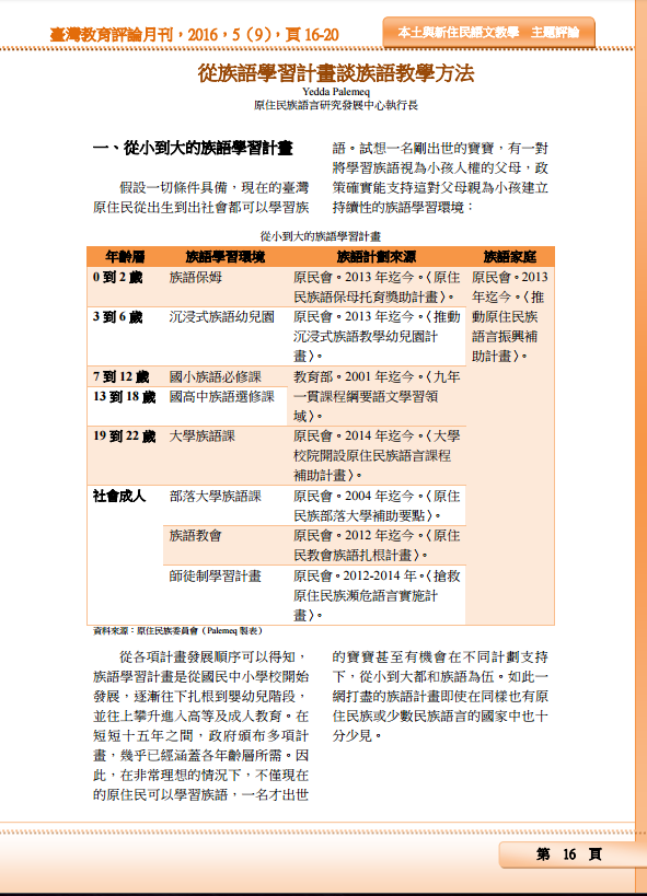 從族語學習計畫談族語學習方法[臺灣教育評論2016年第5卷第9期]