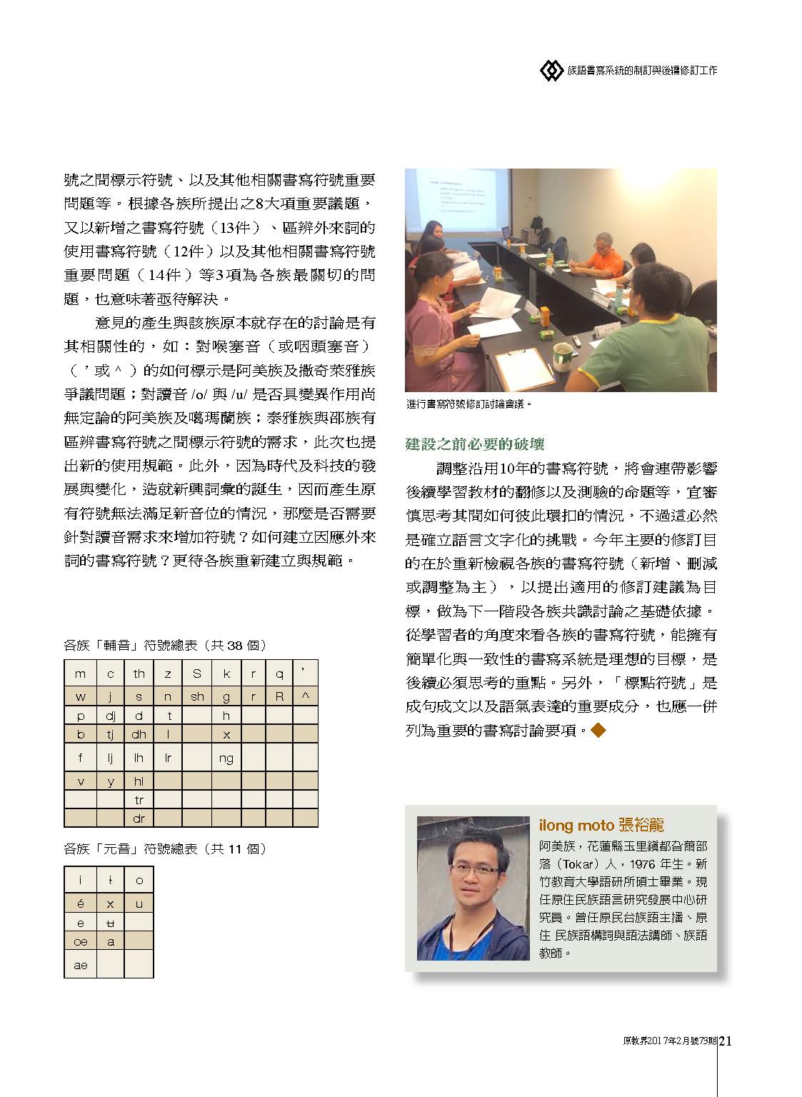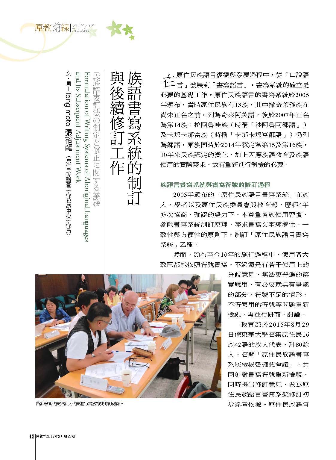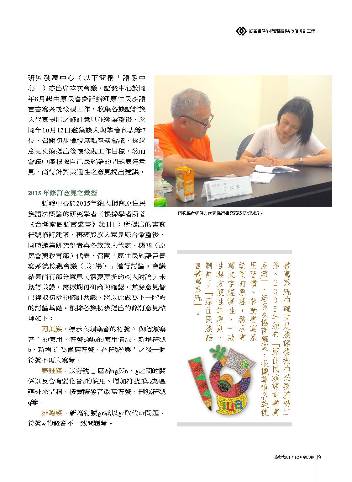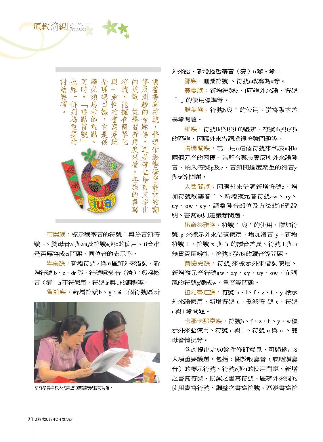 族語書寫系統的制訂與後續修訂工作[原教界2017年2月號73期]