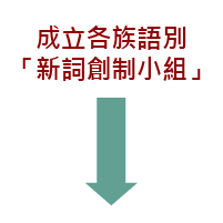 ![]() | 1.依詞彙類別,規劃每一季應創詞彙。2.召開會議:各族語召集人會議、區域性工作說明會議。3.民眾投稿:藉由語發中心建置之網路作業平台公告擬新創中文詞彙,蒐集彙整族人提供之新創詞彙。 | 語發中心新創詞小組 |
